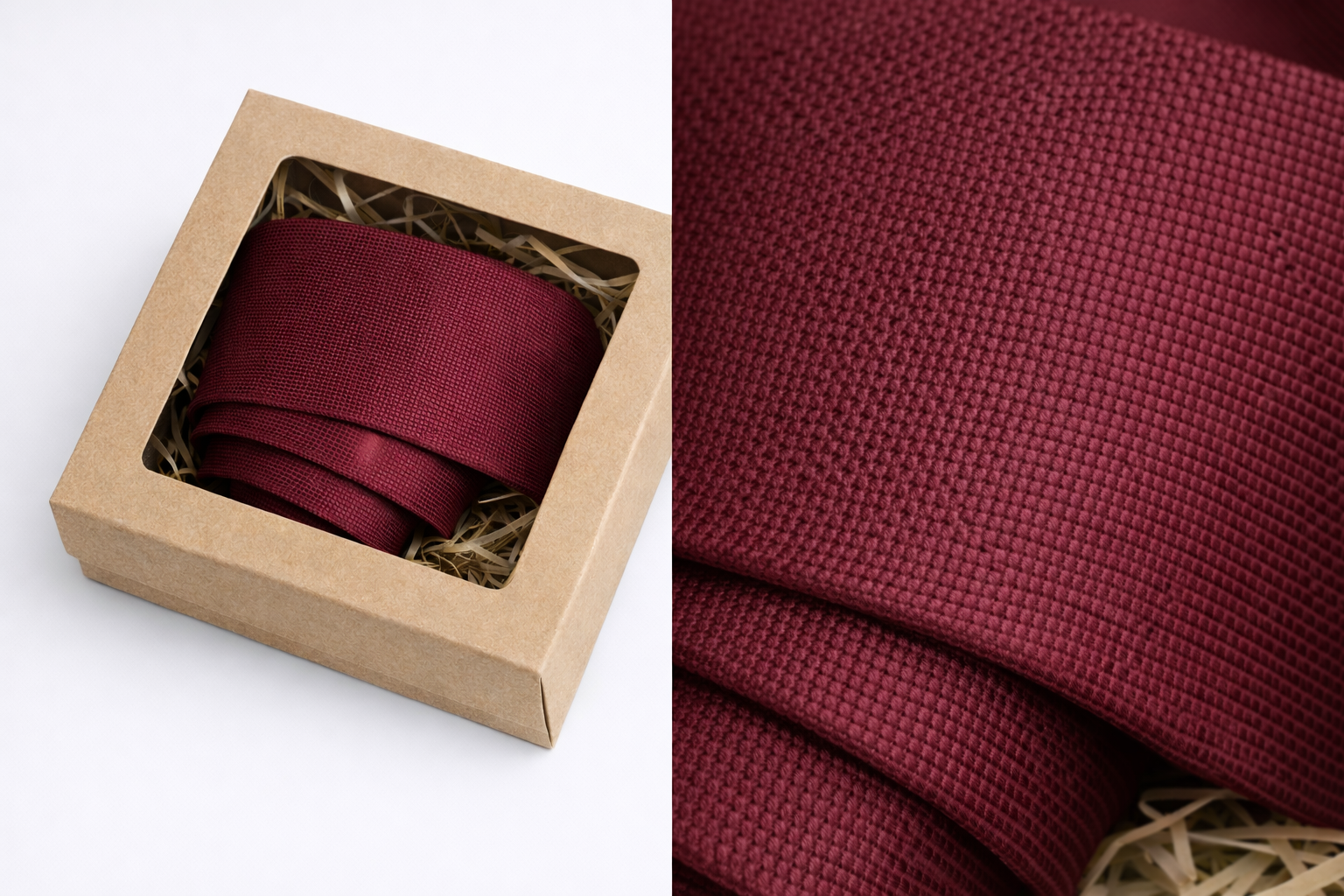 Kit Caixa de Presente Gravata Slim Bordô Lisa Trabalhada