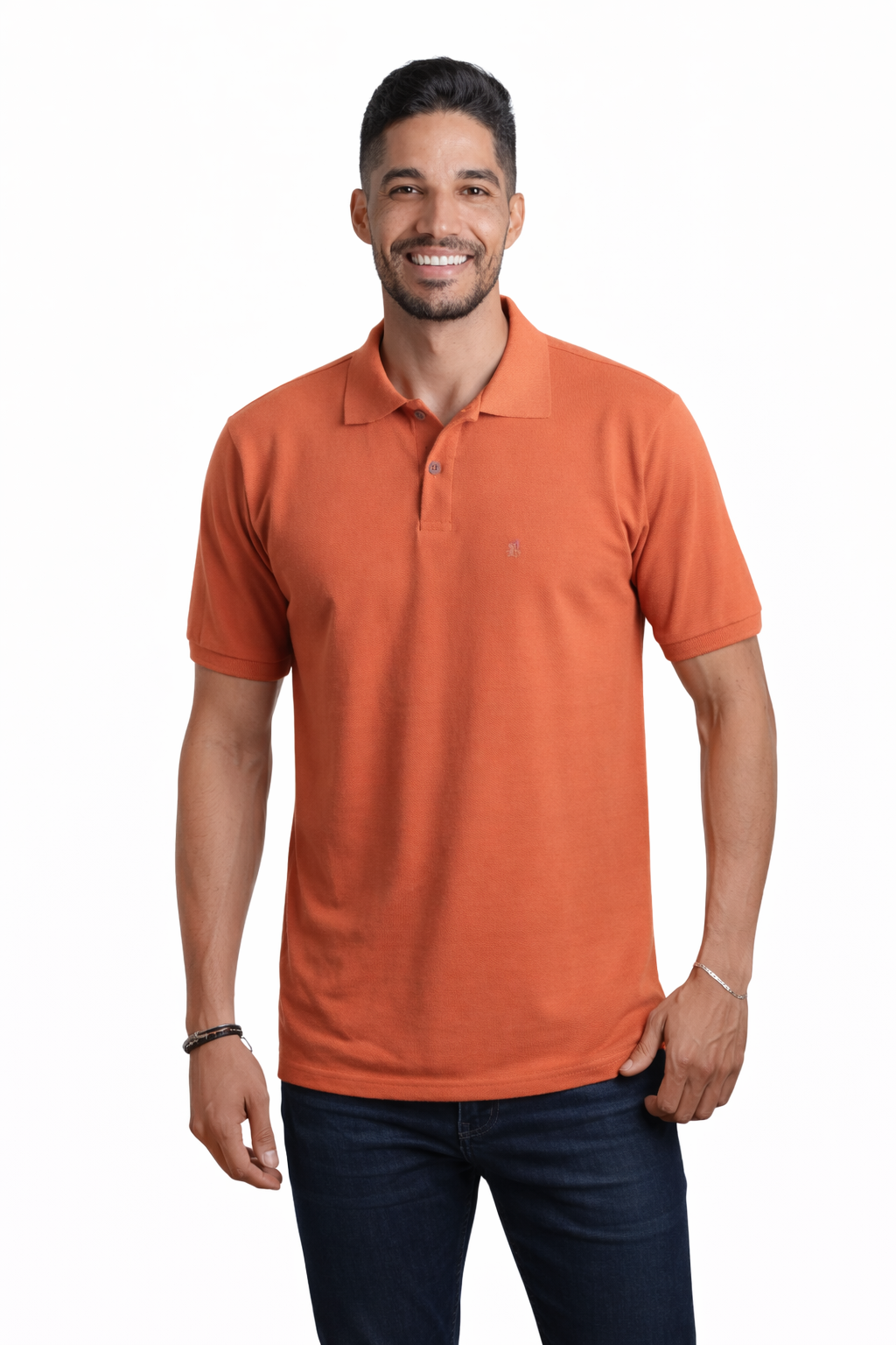 Adicione personalidade ao seu guarda-roupa. Garanta já a sua camisa polo piquet terracota e surpreenda com elegância e estilo!