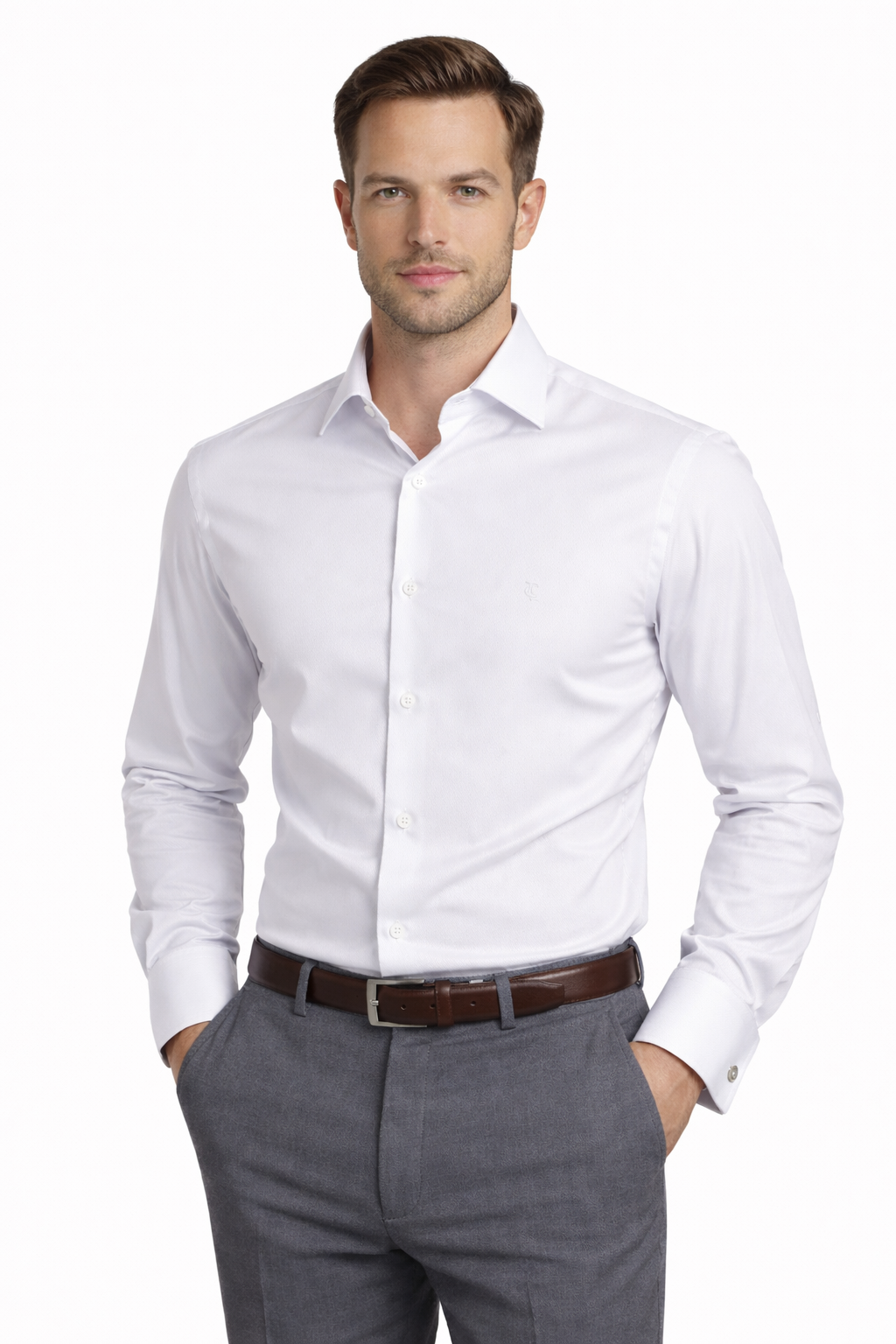 A camisa branca é o curinga do guarda-roupa masculino: ideal para tudo, para o escritório, eventos sociais, cerimônias ou encontros casuais de bom gosto.