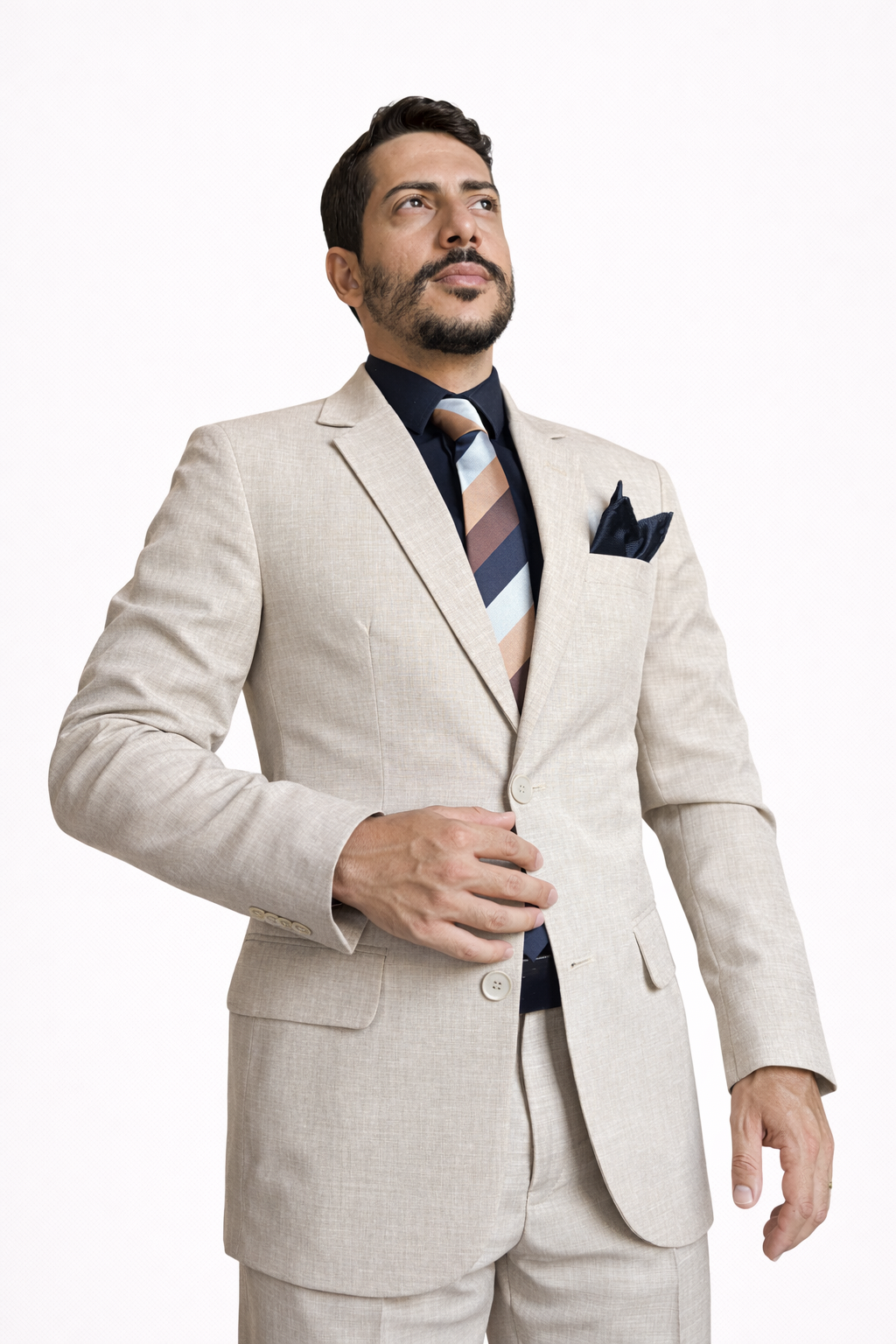 Terno Masculino Bege Areia Melange de Microfibra T&C - Corte Slim e Estilo Italiano**